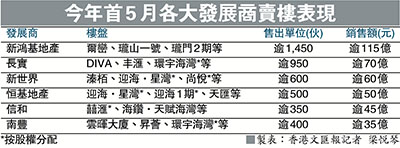 今年首5月各大發展商賣樓表現 (圖)