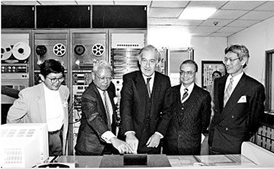 ■1991年,時任港督衛奕信訪問商業電台,身旁為當時該台董事總經理何佐芝。 資料圖片