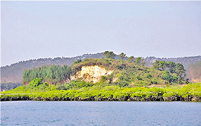■廣西擁有無居民海島632個,佔區內海島總數的98%。圖為被紅樹林環繞的穿牛鼻嶺。本報廣西傳真