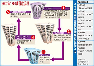 ¦¹¥~¡A³\¥K¤¯¦b¤W¥ô¬F°È¥qªø«e´¿¦¬¨ì850¸U¤¸¥¨´Ú¡A¦Ó¸Óµ§850¸U¤¸´Ú¶µ¬O¥Ñ³¢¬±¦¿´£¨Ñªº¡A¦A¸g¥Ñ³¯¹d·½Â൹Ãö¶¯¥Í¡A±±¤è«üÃö¶¯¥Í¦¬±o´Ú¶µ«á¡A«o¦b2005¦~6¤ë27¤é¦Ü6¤ë30¤é´Á¶¡¡A¥ý«á¥H²{ª÷¡B»È¦æ¥»²¼¤Î¤ä²¼¦s¤J³\¥K¤¯¤Î¨ä¼wºÖ¥ø·~¦³¤½¥q¦W¤U¤á¤f¤º¡C