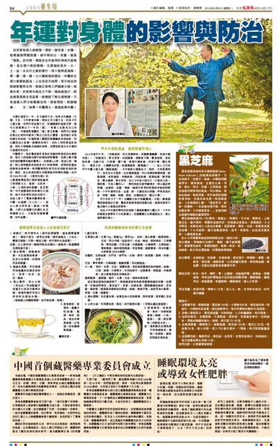 2014年是甲午年,「其運陰雨,其化柔潤時雨。其變震驚飄驟,其病中滿身重」;「雨濕流行,腎水受邪。民病腹滿,清厥意不樂,體重煩冤,甚則肌肉萎,足痿不收,行善瘛,腳下痛,飲發中滿食減,四肢不舉。變生得位......風雨大至,土潰鱗見於陸。病腹滿溏洩,腸鳴漏下......」 從上文可知甲午年屬土運太過(濕氣過盛);全年氣候以濕氣為主;陰雨,大雨雷暴時行;甚至有水災禍害。由於濕氣過盛,所以易導致脾濕洩瀉,脘腹脹滿,食慾減退,咳喘痰飲,四肢煩痛,筋脈抽搐,腰背強直,雙足痿痺,腎水受邪;加之今年是少陰司天(少陰君火是一種狀態,代表人體的心),熱性病症也會明顯增多。即心腦血管問題,血液病,血壓,情緒、睡眠失常等疾病發病率會相對較高。下半年陽明在泉,金盛,肺、大腸容易出問題,呼吸系統炎症、咳喘、過敏、痔瘡、便秘、皮膚病症亦「層出不窮」。