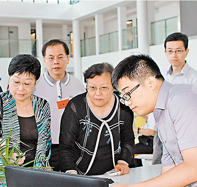 ■港區人代於前海e站通,了解港商開業手續。朱朗文 攝