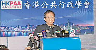 ■曾鈺成昨出席香港公共行政學會舉行的午餐會時表示,普選不代表能解決所有問題。彭子文 攝