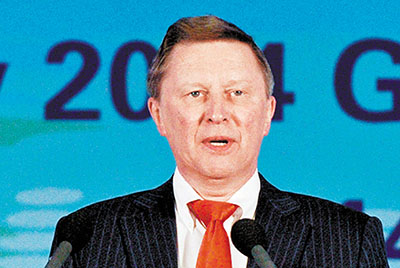 ■俄總統辦公廳主任伊萬諾夫發表演講。 新華社