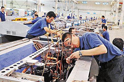 ■河北一台資企業忙碌的生產車間。 資料圖片