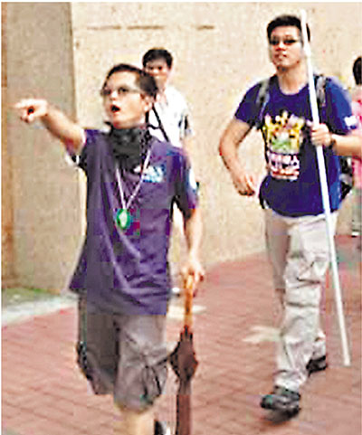 ■兩名懷疑「港獨」分子踩場恐嚇街站義工。 大聯盟供圖