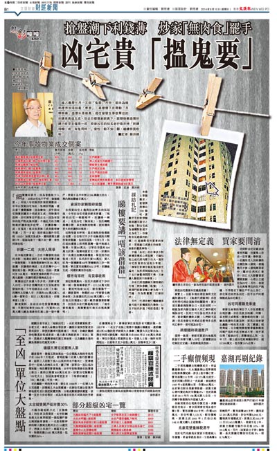 在投資凶宅上幾與佳叔齊名的伍冠流,今年在凶宅市場亦鮮有涉獵,「現時的凶宅一瓥ㄜ囓迭A折讓得一兩成。」有見凶宅「無肉食」,伍氏轉戰業權分散、甚至無契的物業,從而獲得更大的折讓和回報率。