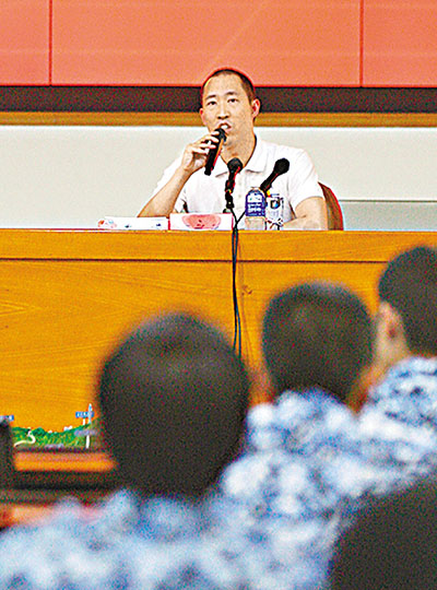 ■黃永光入營了解「大學新兵」生活感受,並和他們分享自己的經歷。莫雪芝 攝