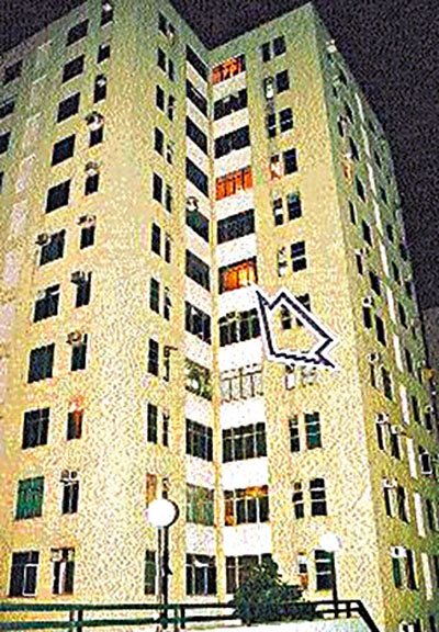 ■德福花園C座五屍案現場(圖中箭嘴所指)單位去年年初曾開價300萬元拍賣,但最終收回。資料圖片