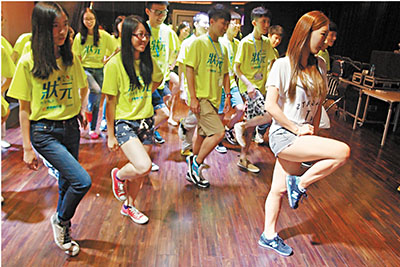 ■學生參與M Academy的舞蹈體驗活動,向娛企集團的跳舞老師學跳兩首韓國流行歌曲的舞蹈。鄭伊莎 攝