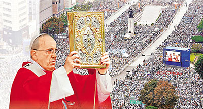 正在韓國訪問的教宗方濟各,昨日進行今次行程的重點活動,在首爾光化門廣場舉行露天彌撒,為韓國124名殉教者主持宣福禮。獲冊封為「真福」的包括聖名保祿的韓國首位殉教者尹持忠,以及18世紀在當地傳教的中國神父周文謨。教宗在儀式上譴責貧富懸殊現象,呼籲富裕社會的民眾聆聽窮人聲音。多達100萬名民眾在場見證,當局動員3萬警力嚴密戒備。