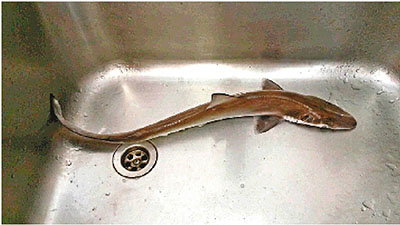 ■前日在南丫島洪聖爺灣泳灘捕獲的年幼竹鯊。