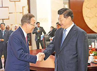 ■習近平昨日在南京會見聯合國秘書長潘基文。新華社