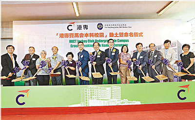 港專機構早前獲香港賽馬會慈善信託基金捐助4,480萬元,加上教育局分配前五邑工商總會馮平山夫人李穎璋學校校舍並貸款3,000萬元,以拓展本科教育。為答謝捐助單位,新校舍將命名為「港專賽馬會本科校園」,而校舍大樓則命名為「港專賽馬會大樓」,校方昨舉行動土暨命名儀式,主禮嘉賓包括教育局副局長楊潤雄、沙田民政事務專員何麗嫦、香港賽馬會慈善事務執行總監蘇彰德等。