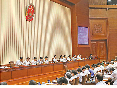 ■第十二屆全國人大常委會第十次會議昨日表決通過全國人大常委會關於香港特別行政區行政長官普選問題和2016年立法會產生辦法的決定。 中新社