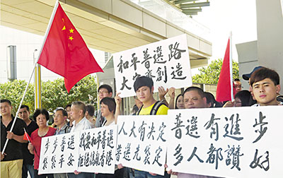 ■大批市民走上街頭,支持全國人大常委會就香港政改作出的決定。 近期多個民意調查都反映,大多數市民支持香港政制向前走。 資料圖片