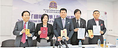 ■中澳法學基金交流會昨舉行記者會,回應全國人大常委會的決定。鄭治祖 攝