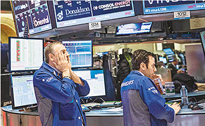 ■美股跌過二百點,相信令不少交易員大為緊張。 法新社