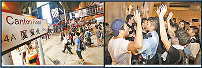 ■有百多人佔領尖沙咀廣東道,與警員對峙。
