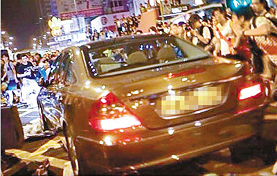 ■涉案平治房車前晚凌晨高速駛入旺角示威人群中。