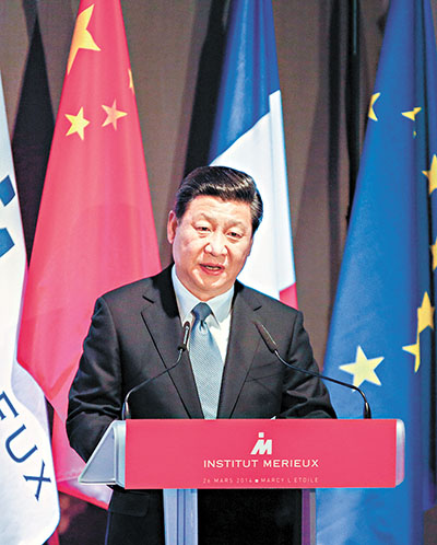 ■習近平今年3月訪問法國時指出,中國這頭獅子已經醒了,但和平、可親、文明。 資料圖片