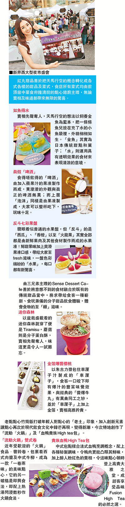 ¤@¦V¥H¨Ó¡A»´ä¤HÁé·R©]¥«¤Î®d©]¶¼¹¤å¤Æ¡A·s³£·|¼s³õÄ~©¹¦~Á|¿ìDating in the Dark©]¿ß¹°ó«á¡A¥Ñ§Y¤é°_¦Ü10¤ë26¤é¦A«×§eÄm²Ä¤G©¡Dating in the Dark¤j«¬¥DÃD±À¼s¬¡°Ê¡A¨Ã¯}®æº¿ì¡u·s¬É¦è¤j«¬©]¥«²±·|¡v¡C¦Ó¥Ñ§Y¤é°_¦Ü10¤ë24¤é¡A³õ¤ºªº¤Ñ´¹À]³]¸m·¥¨ã®æ½Õ¸ËæCªº¡u¦WõWÀ]¡v¡AÁܱo13Ó¹©²³æ¦ì¥[·ù½ü¬y§U°}¡A¨ä¤¤³Ì¬°§l¤Þ¥iºâ¬O¥Ñ«°¤¤¤T¦ì°¤~¦W¼p¥D²zªºÀ\ÆU¡u¬õ¤Y²¢«~¡v¡B¡uSense Dessert Cafe¡v¤Î¡u¦ÑÂIÂI¤ß¦Ëµ©¶º¡v¡A¥H¡uÄAÂÐ¥DÃD¡v³Ð§@¤@¨t¦C¹É¹ÉºÙ©_¡B±q¥¼Ãn¥úªº¦Ü¡uÄA¡v²¢«~¬üÂI¡A©ó³õ¤º´Á¶¡©w©±¿W®aµo°â¡A©_¤Ûª±¨ý¤Q¨¬¡C