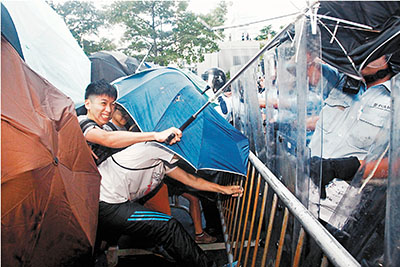 ■9月27日,示威者用傘骨襲擊警員。 資料圖片