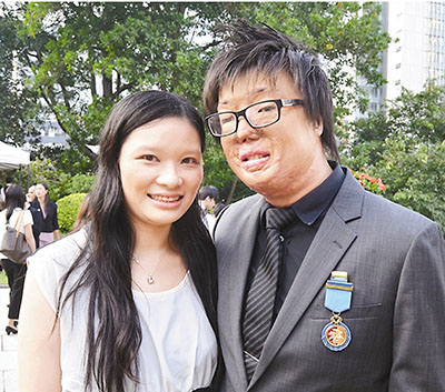 香港文匯報訊(記者 羅繼盛)人稱「衡仔」的張潤衡,1996年參與學校旅行時不幸遇上八仙嶺山火,同行兩位老師和3名學生不幸離世。倖存的張潤衡雖然有60%皮膚燒傷,並且只剩兩根手指、右眼失明、面容被毀,但康復後沒有自暴自棄,更積極裝備自己,以自己的經歷和專業,熱心參與社會服務,昨日獲頒授榮譽勳章。