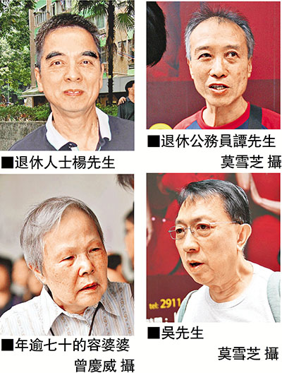64歲的退休人士楊先生認為,「佔中」者視法律如無物,他自己是次簽名,是要維護香港的法治:這一小撮人影響到大部分港人生活,令到很多人上班上學花多了很多時間。特區政府不應再對「佔領」者如此忍讓,尤其現在已經有人在網上煽動「佔領」機場、港鐵等。