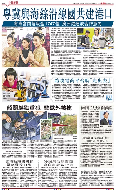 海博會組委會副主任劉曉捷稱,本屆博覽會在中國率先引入口岸物流板塊,共吸引了境內外70多家大型航運、物流企業參展,集中顯示廣東與海上絲綢之路沿線國家和地區在口岸航運和運輸物流行業上的互聯互通。