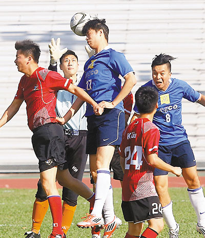 ■何俊賢(27號球衣)跳起來高人一等,頭球有優勢有實際。曾慶威 攝