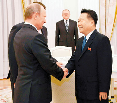 韓國多位政府消息人士昨日透露,俄羅斯總統普京前日在莫斯科接見朝鮮領導人金正恩特使、朝鮮勞動黨中央政治局常委、中央書記崔龍海之後,俄方通過外交渠道向韓方介紹了相關情況。俄方表示,兩人會面約1小時,會談氣氛融洽,崔龍海轉達了金正恩的親筆信。