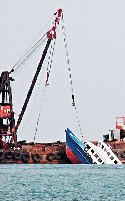 ■當日被撞「南丫四號」打撈情況。 資料圖片