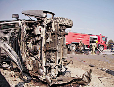 ■車輛嚴重損毀。新華社