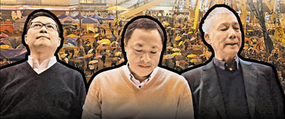 ■「佔中三丑」戴耀廷、陳健民及朱耀明昨日高調宣布將於今天「自首」,法律界紛表示,「三丑」罪責難逃。梁祖彝 攝