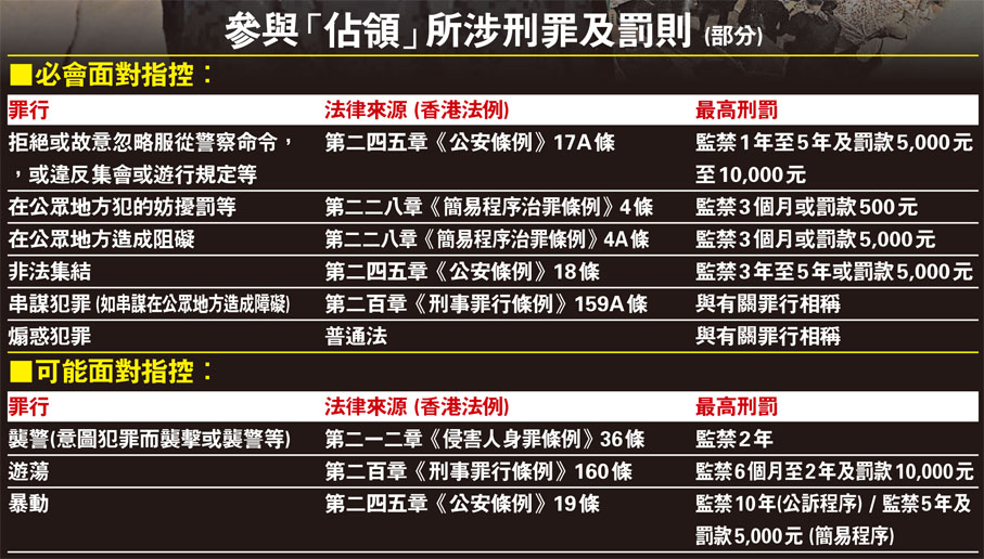 參與「佔領」所涉刑罪及罰則 (部分) (圖)