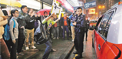 ■假扮購物的示威者昨夜在旺角挑釁警方。劉國權 攝