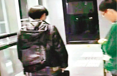 ■黃之鋒在包圍政總前進入立法會大樓。 電視截圖