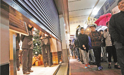 ■示威者昨晚繼續在旺角區流動「佔領」,商戶恐受衝擊紛紛落閘。 劉國權 攝