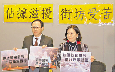 ■梁美芬與莊永燦昨批評示威者令旺角居民和商戶感到纏擾。 鄭治祖 攝
