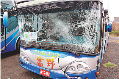 至昨晨10時許,3車行經阿里山公路靠近南二高中埔交流道附近時,疑因一小客車突然從外側車道迴轉,第一輛旅巴平安通過,其中1輛在後的旅巴閃避不及擦撞,尾隨的旅巴雖已立即緊急剎車,但因天雨路滑致發生追撞,擋風玻璃整個碎裂,造成兩車上共11人受傷送院。警方指旅遊巴公司事後立即調派其他旅巴到場,接載其餘未有受傷旅客繼續行程。