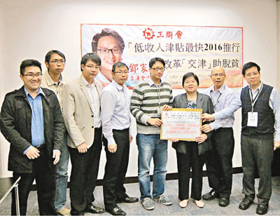 香港文匯報訊(記者 聶曉輝)受立法會拉布影響,將惠及20萬個家庭、合共逾70萬人的「低收入在職家庭津貼」(低津)實施遙遙無期。工聯會立法會議員鄧家彪指出,低津延遲實施,低收入家庭根本只能「畫餅充飢」,要求善用有巨額餘款的「鼓勵就業交通津貼」(交津),在實施低津前的過渡期放寬申請資格並提高津貼金額,讓低收入家庭可盡快受惠。他昨日聯同工聯會區議員及社區幹事,會晤勞工處助理處長李寶儀表達意見。
