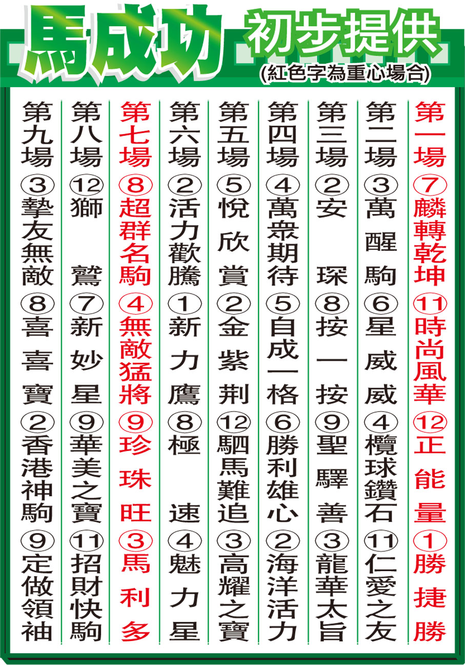 周三快活谷九場草地夜賽排位表 (2014-12-09) (圖)