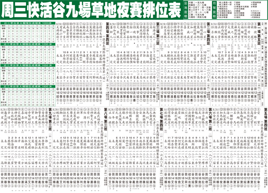 周三快活谷九場草地夜賽排位表 (2014-12-09) (圖)