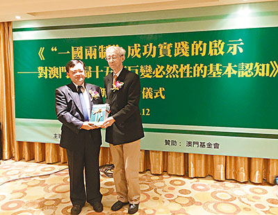 香港文匯報訊(記者 施虹羽 澳門報道)澳門學者同盟昨日舉辦《「一國兩制」成功實踐的啟示-對澳門回歸15年巨變必然性的基本認識》大型研究報告新書發布會。該書具有宏觀概括性、政經文兼顧性、論述系統性、前瞻清晰性,旨在分析澳門回歸15年所產生的巨變基礎上,明確地提出8項基本經驗、8項主要問題和8項思考建議。