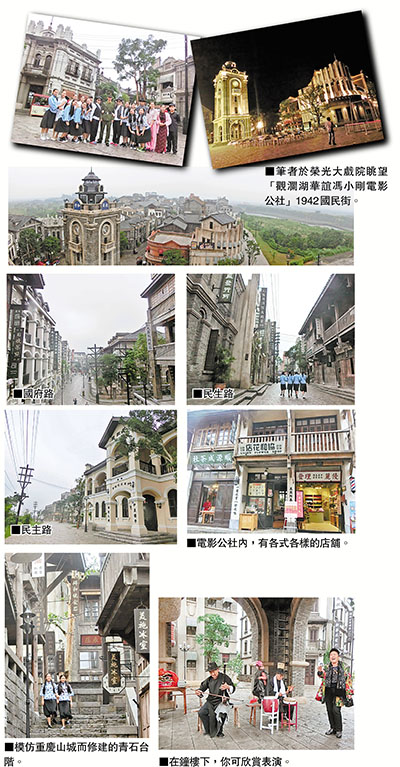 來到海南島,你會到哪兒遊玩﹖最近,筆者發現海口多了一個以電影為主題的旅遊勝地,這個剛於今年6月開幕的「觀瀾湖華誼馮小剛電影公社」,其中一條已建成的1942民國街(長江流域),是以馮小剛執導的影片《1942》所創建的重慶街景為規劃設計背景元素,沿街共有91棟造型各異、民國風格突出的建築,集合了上世紀30、40年代長江流域四大城市--重慶、武漢、南京、上海等地典型的民居建築風情,形成豐富的視覺盛宴。筆者早前遊走其中,猶如置身拍攝場景中,重溫當年建築,感受民國風情。文︰吳綺雯 攝︰雨文、焯羚