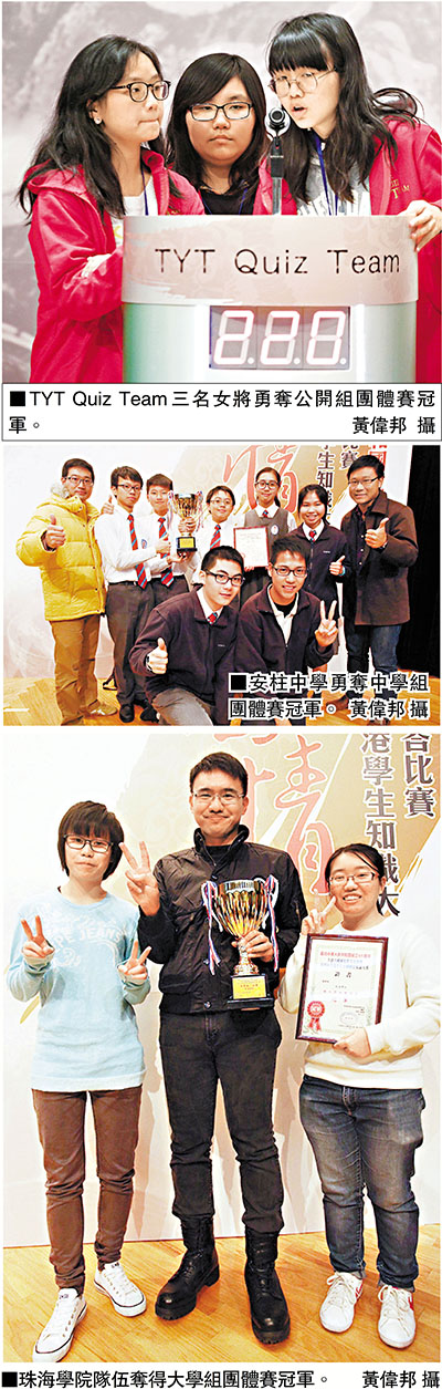 ¤½¶}²Õ¹ÎÅéÁɪº¾Ôªp¿E¯P¡A«a¨Èx¤§ª§¥Ñ¨â¶¤¥ç®v¥ç¤Íªº¶¤¥îª§¹Ü¡C¥H360¤À¡A20¤À¤§®t¤OÀ£¨Èx¶¤¥îÀò±o¤½¶}²Õ¹ÎÅé«axªº¡uTYT Quiz Team¡v¡A3¦W¤k±N¬O¨Ó¦Û»´ä¤¤¤å¤j¾Ç¤¤¤å¨t¤Î·s¶Ç¨tªº¤èÀR¶²¡B¾¤¯ô¤Î±ç¼ÖÄf¡C¦U¤H¦~¬ö»´»´¡A«oì¨Ó¬O¥þ´ä¾Ç¥Í¤¤°ê°ê±¡ª¾ÃѤjÁɪº¡u±`«È¡v¡A´¿¤T©¡¥Nªí¤¤¾Ç°ÑÁÉ¡A¥BÀòÀu²§ª÷¼úªº¨ÎÁZ¡C