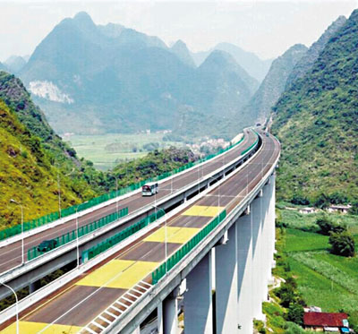 ■西部大開發今年新開工33項重點工程。圖為今年9月通車的廣西河池至都安高速公路聾竹坪特大橋。網上圖片