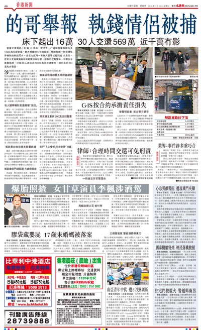 涉執錢私吞被捕男子姓呂、43歲,女子姓李、36歲,據知是情侶關係,暫涉盜竊罪被扣查。據知當日2人乘的士擬往九龍灣常悅道20號環球工商業大廈,途中遇上解款車跌錢,2人立即落車執錢,並付車資後匆匆離去。警方其後根據的士司機提供資料,鎖定男乘客樣貌,並一直在常悅道附近守候,至昨晚終見該「的士男」離開商廈,即上前截查,當場在其單位床下底起獲逾16萬元涉案新鈔,其後再到其女友的將軍澳住處,再撿獲一批涉案鈔票。