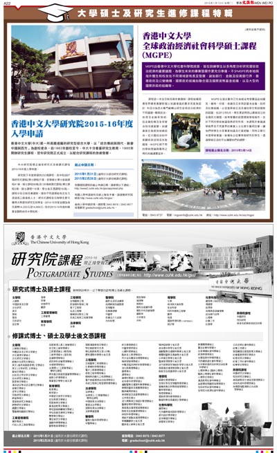大學碩士及研究生進修課程特輯 (2015-01-13) (圖)
